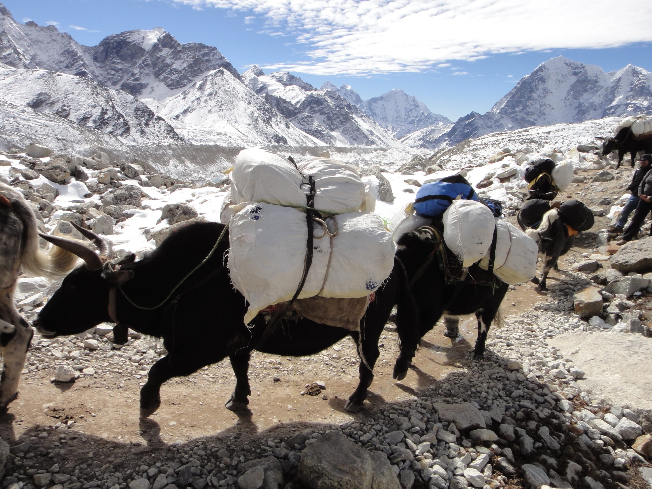 Départ tôt le matin. Le chemin longe des vallées d’ablation, franchit moraines du glacier pour arriver aux maisons de Gorakshep, situé au pied du Kalapathar. Montée régulière jusqu’à ce belvédère majestueux adossé au Pumo Ri. Vue inoubliable sur le col sud, passage obligé de l’ascension de l’Everest. Chemin inverse jusqu’à Gorakshep. Puis descente douce direction Lobuché et Pheriche.