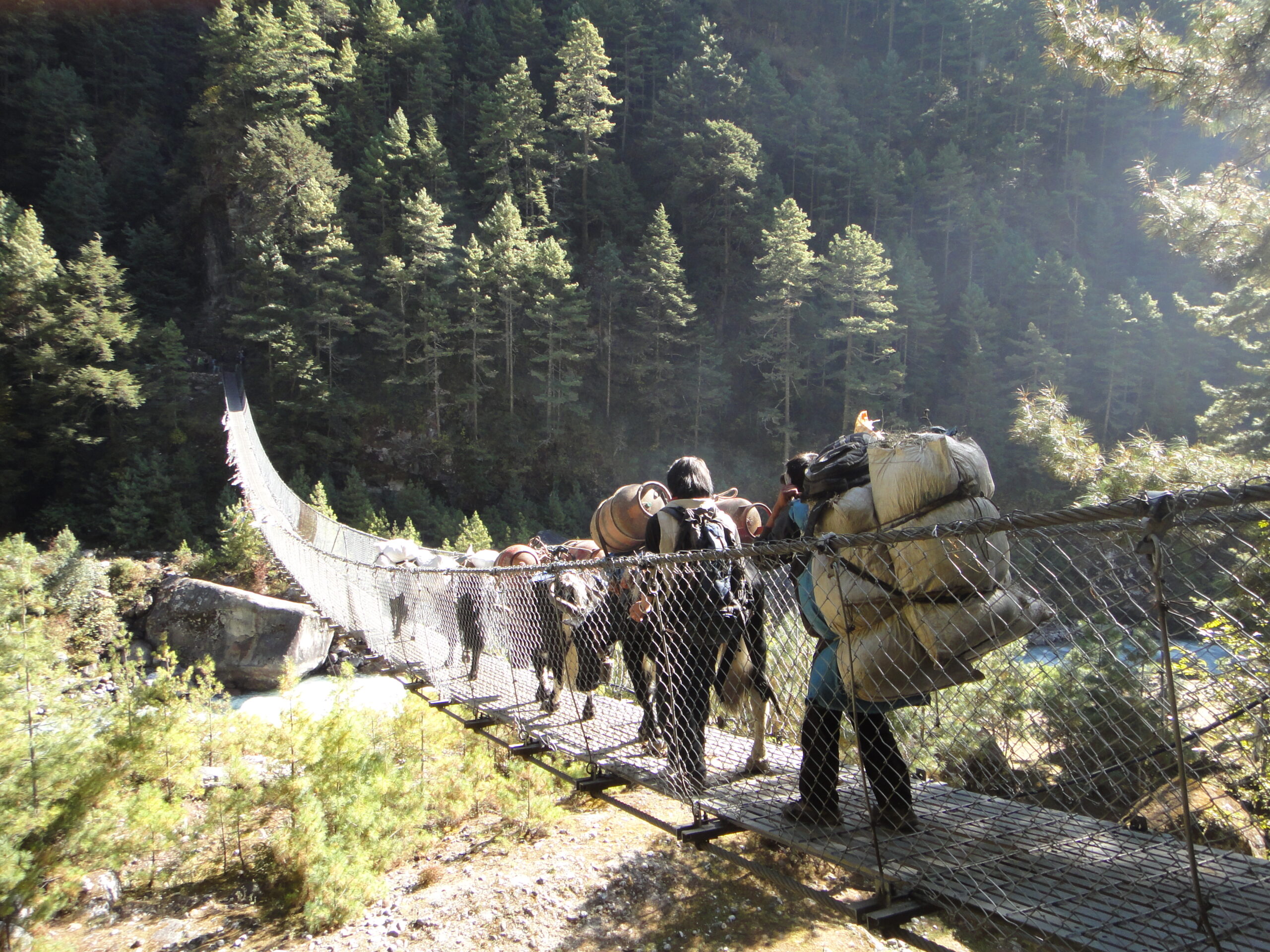 Peut être aurait vous la chance d’assister au marché tibétain ! Sortie du village, faites tourner les moulins à prières en espérant que ce geste apportera protection à ces habitants. Dernier regard envieux sur l’Everest. Passons la passerelle suspendue (Larja Bridge) sur la rivière Manjo khola , eaux tumultueuses. Traversée de Phakding, Le paysage reverdit, croisement de porteurs, de caravanes yaks. Dernière montée de ce mini trek somptueux.